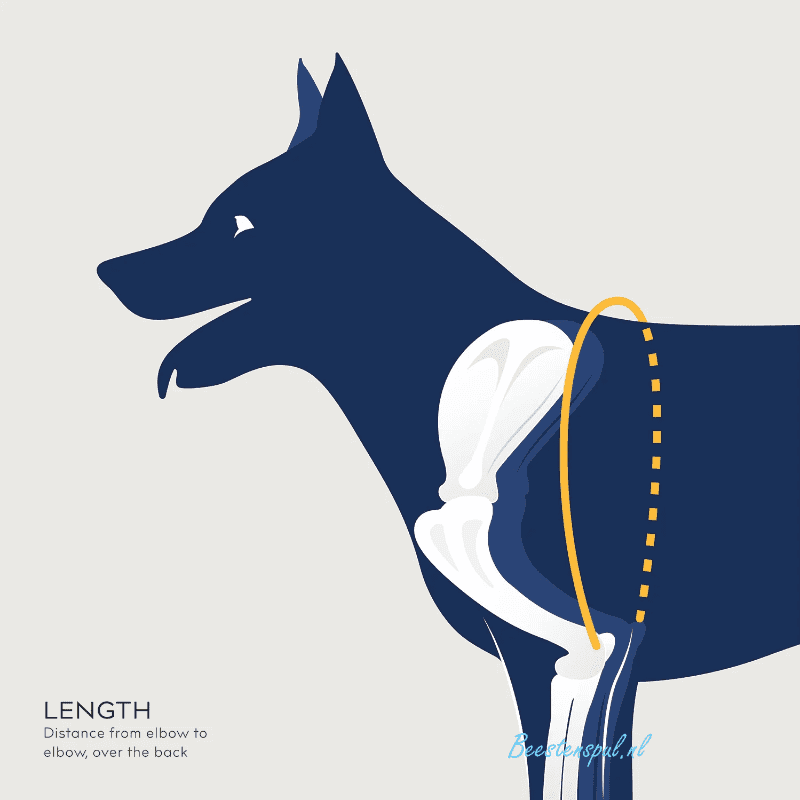 Let op tijdens het bestellen dat u de goede kant kiest: links of rechts. Ga hierbij achter de hond staan en dan is uw linkerkant ook de linkerkant van de hond. Onderstaande maten zijn de maten van de rug, zo kunt u de poot meten en zien welke maat overeenkomt.