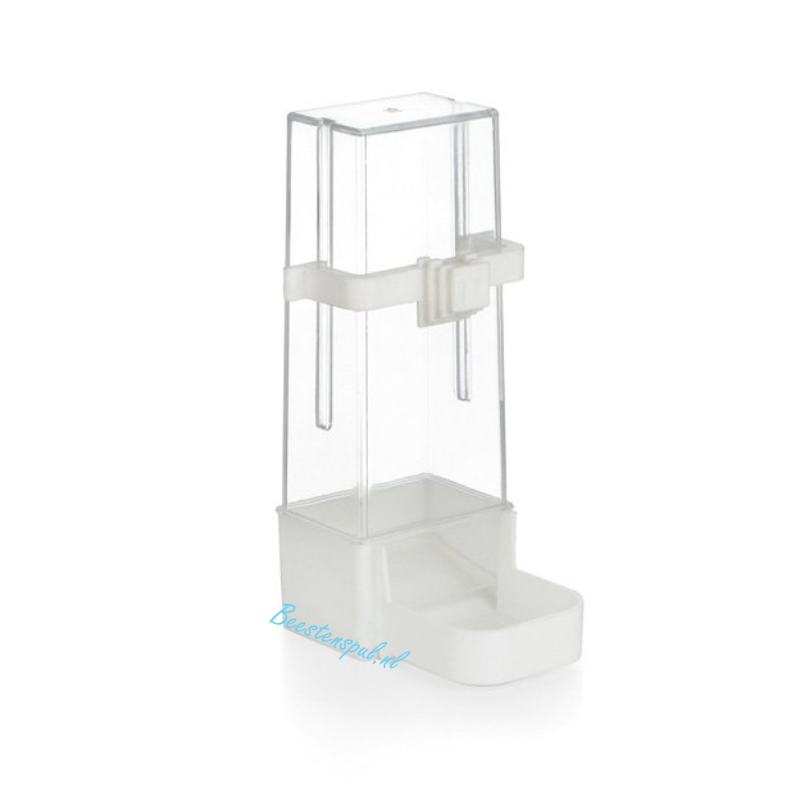 Deze fontein bevat een clip, die je kan bevestigen aan de tralies van de vogelkooi.
