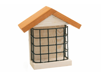 Door een vetblok/birdcake te plaatsen in deze houder van hout en metaal, kunnen tuinvogels genieten van een lekkere traktatie.