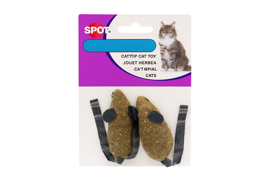 Catnip candy muis zijn twee muizen gemaakt van gecomprimeerde kattenkruid voor maximale potentie met faux lederen oren en staart.