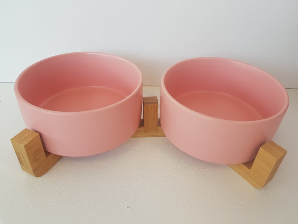 doorsnede eetpot 15.5 cm , in keramiek. Mooie kwaliteit met houten staander.