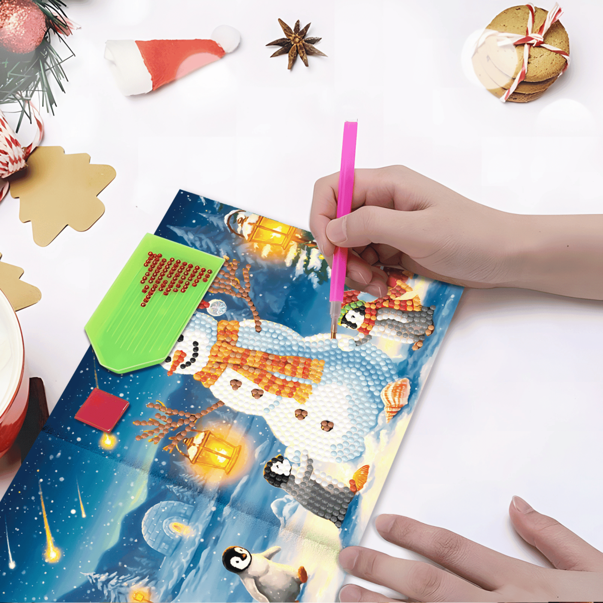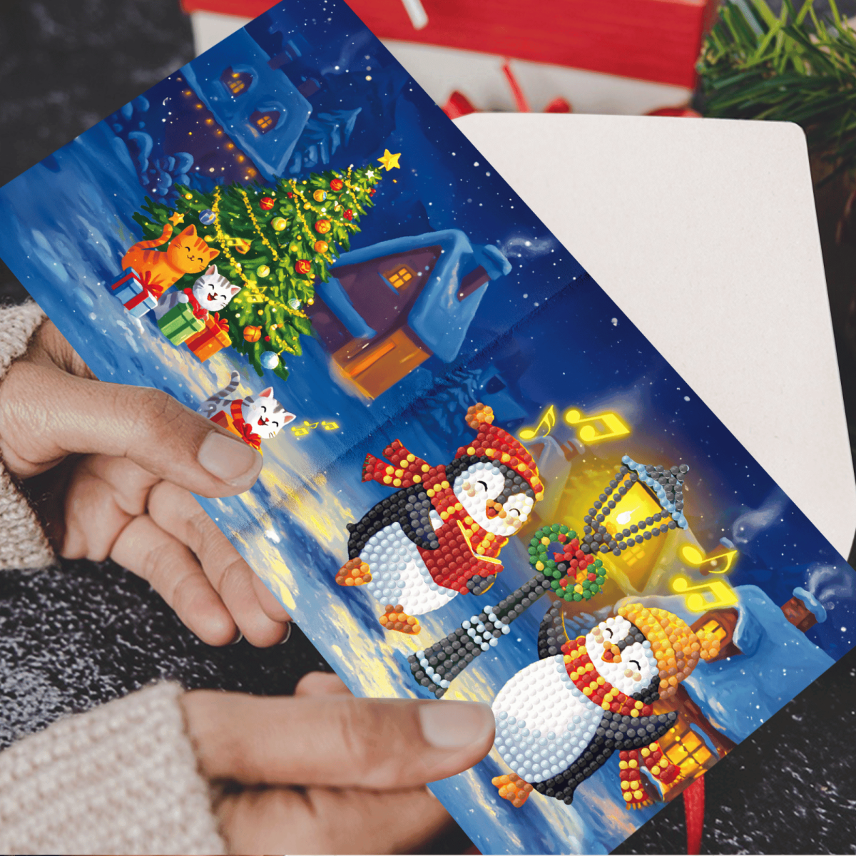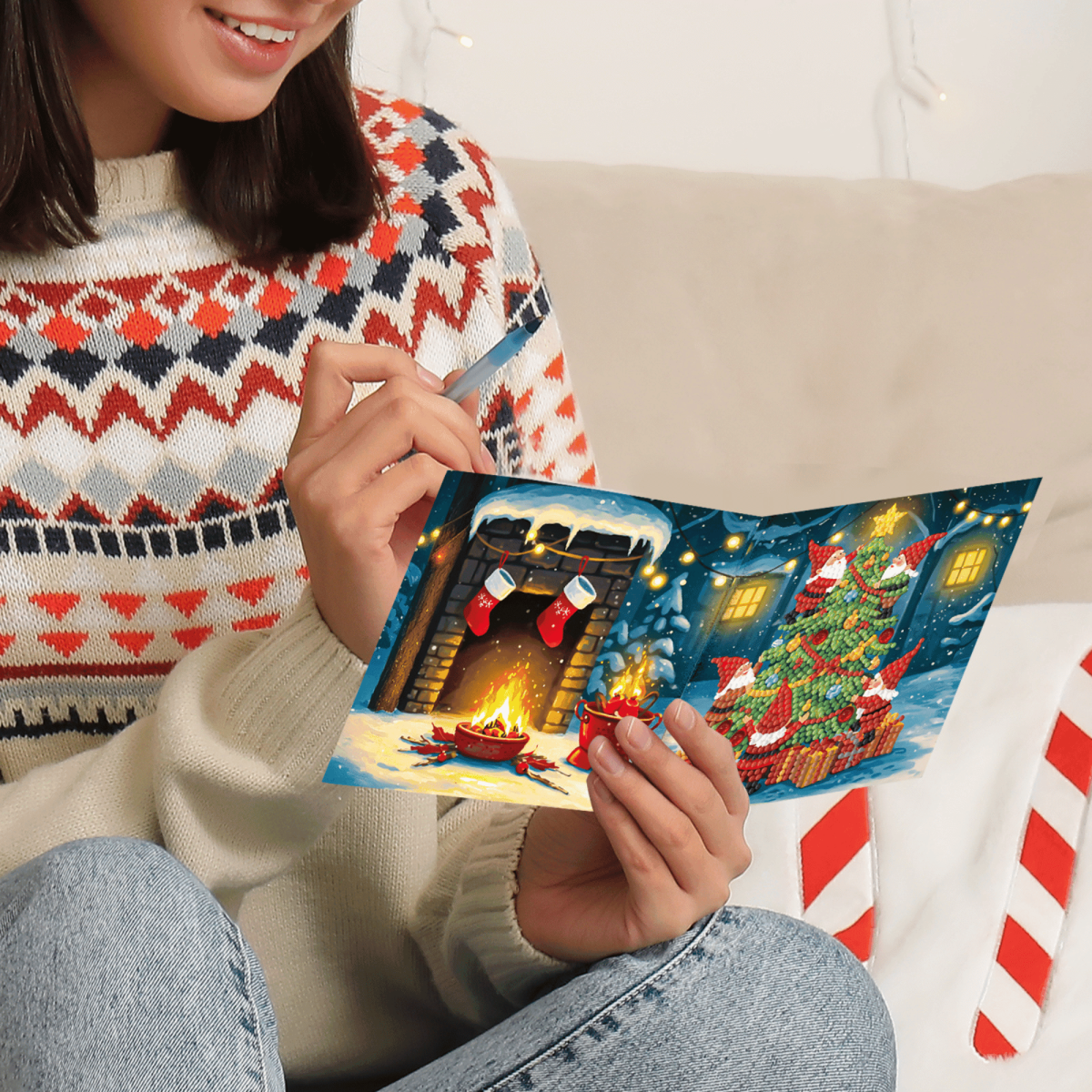 Deze set combineert het plezier van Diamond Painting kerst met het warme gevoel van een handgemaakte kaart. Kerstkaarten maken was nog nooit zó leuk. Door het plakken van de kleine steentjes krijgt elke kaart iets bijzonders. Ze lichten zacht op in het kerstlicht en maken jouw zelfgemaakte kerstkaart extra speciaal.