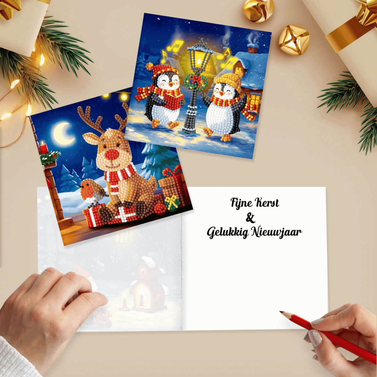 Ben jij dol op Diamond Painting én op de gezelligheid van kerst? Dan is dit iets voor jou. Deze unieke set bevat 12 luxe Diamond Painting kerstkaarten met Nederlandse teksten. Je maakt niet alleen iets moois om te versturen, maar beleeft ook zelf het plezier van creatief bezig zijn in de decembermaand. Of je nu een ervaren Diamond Painter bent of net begint: deze kaarten zijn perfect als je houdt van zelf kerstkaarten maken.