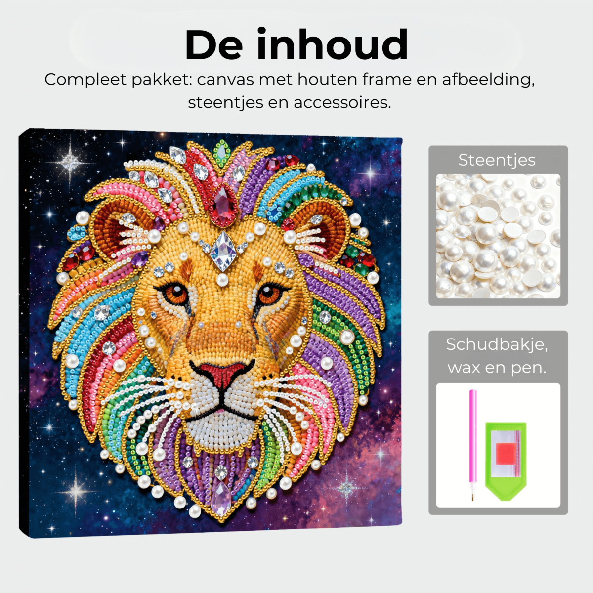 Zoek je een Diamond Painting die ontspannend is om te maken én daarna echt opvalt aan de muur? Met Diamond Painting Schilderij Leeuw uit de Pearl Collectie maak je zelf een krachtige wanddecoratie met een luxe en kleurrijke uitstraling. De sierlijke leeuwenkop, het houten frame en de glanzende parelsteentjes zorgen samen voor een bijzonder eindresultaat dat direct sfeer brengt in huis.