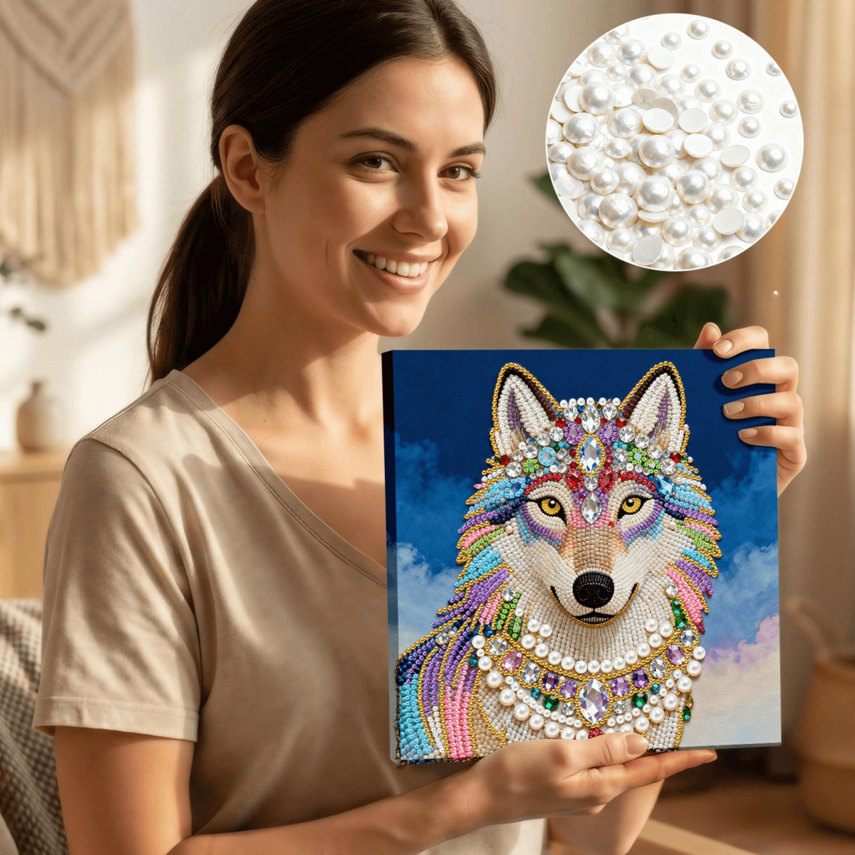Wil je zelf een bijzonder Diamond Painting schilderij wolf maken dat rust geeft én mooi staat in huis? Bestel dan Diamond Painting Schilderij Wolf uit de Pearl Collectie en maak jouw eigen sfeervolle wanddecoratie met glanzende parelsteentjes.