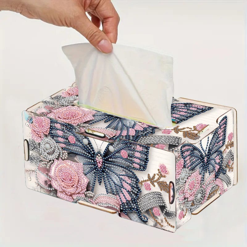 ✓ 1 Diamond Painting tissuebox met vlinder-design (DIY – zelf in elkaar te zetten)