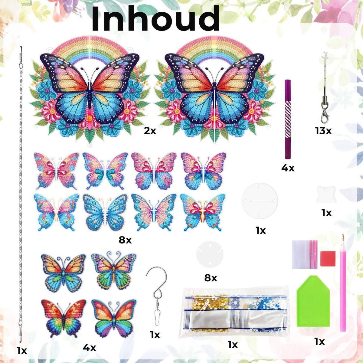 ✓ 1 Diamond Painting windgong met vlinder en regenboog