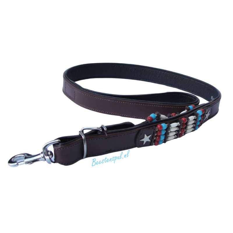 Stevige lijn en bij de musketon aan beide zijden versierd met kleurige kralen en een chroom musketon.