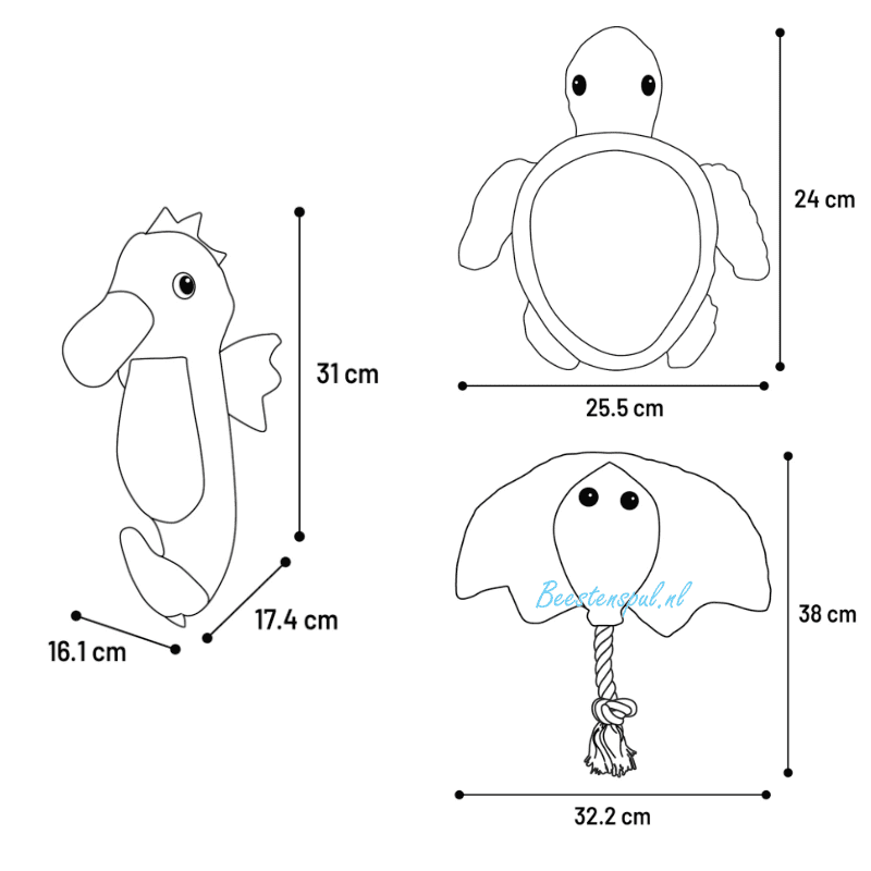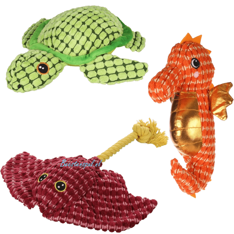 Deze zeedieren zijn gemaakt van stevig textiel, bevatten een pieper en knisperend materiaal.