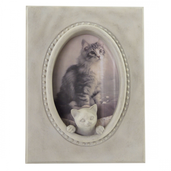 Een mooi beige fotolijst met 3D kat die je op kunt hangen maar ook neer kan zetten.