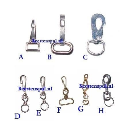 (type, totale lengte, binnenkant oogafmeting (Messing of Chroom)