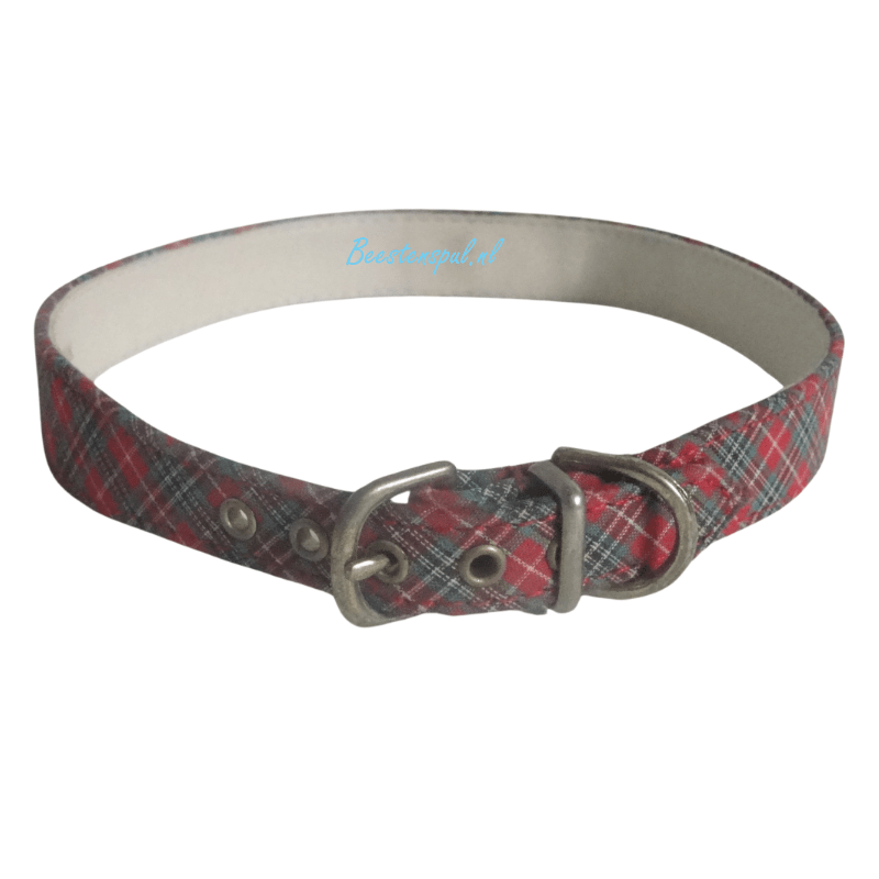De Scottish Dream halsband heeft een stoffen bovenkant met een Schotse ruit print.