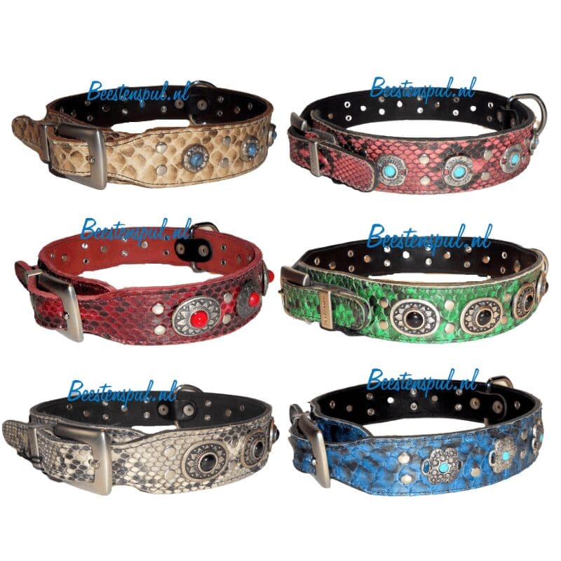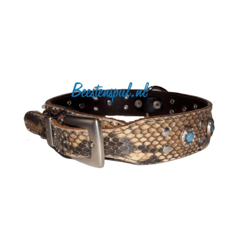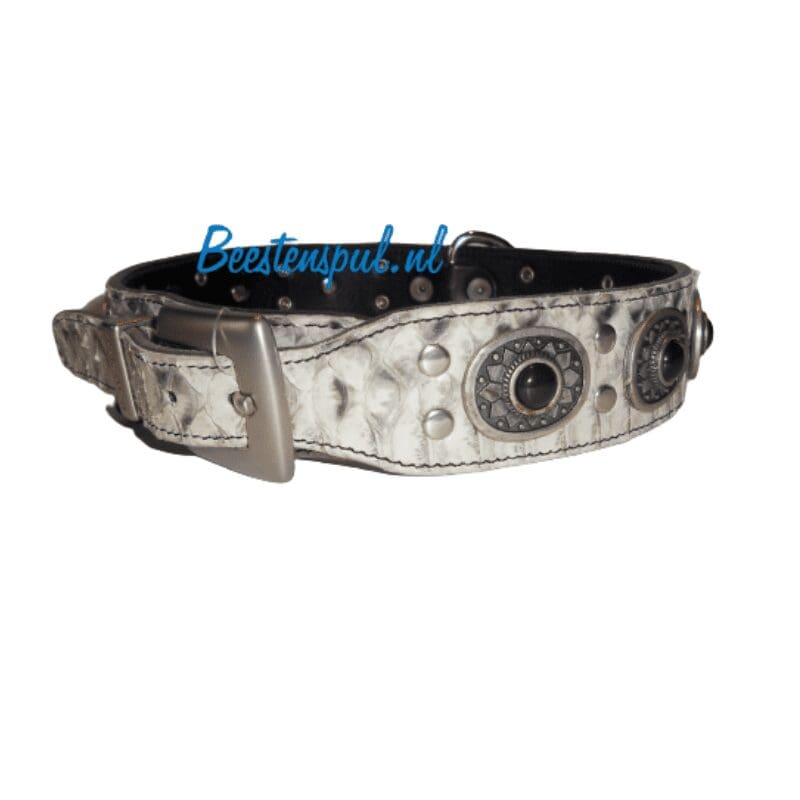 Deze zeer mooie halsband van het merk Sebastian heeft een slangenleder look.