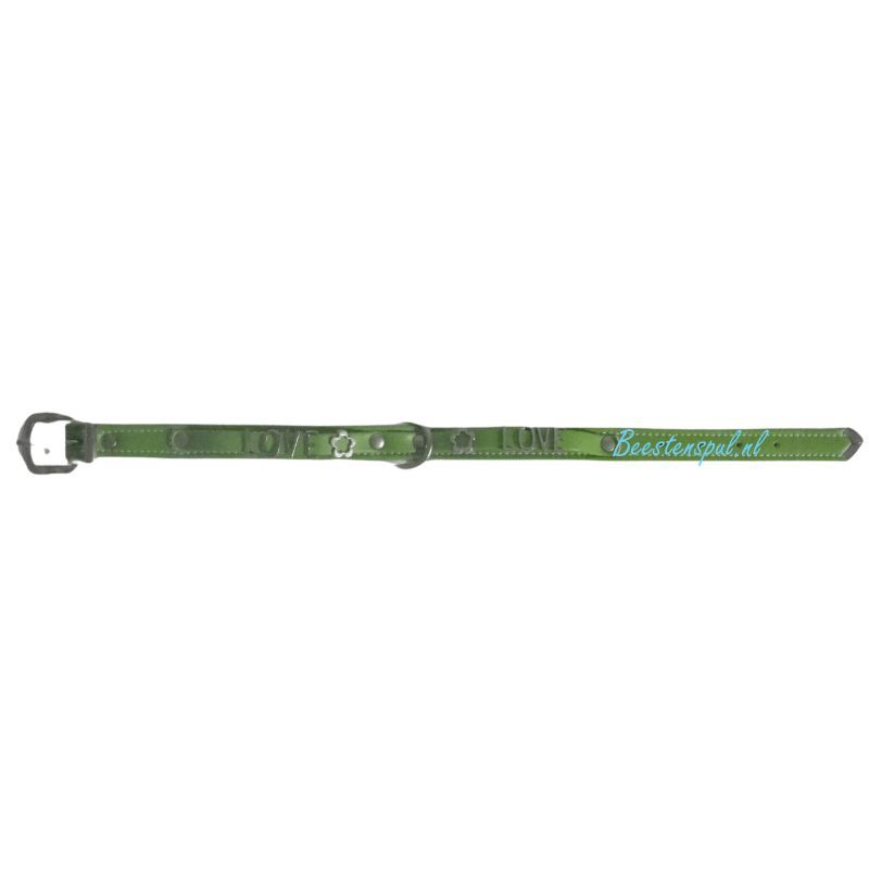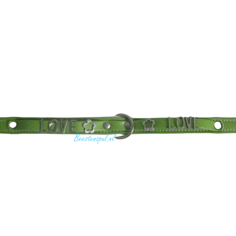 Zachte halsband met het woord “LOVE” in zilverkleurige letters.