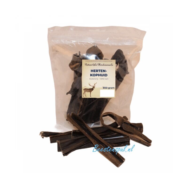 Hertenkophuid is een 100% natuurlijk gedroogde snack.