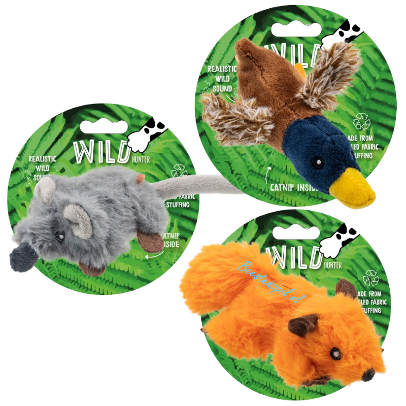 Het speeltje is voorzien van een soundchip met een natuurlijk dierengeluid.
