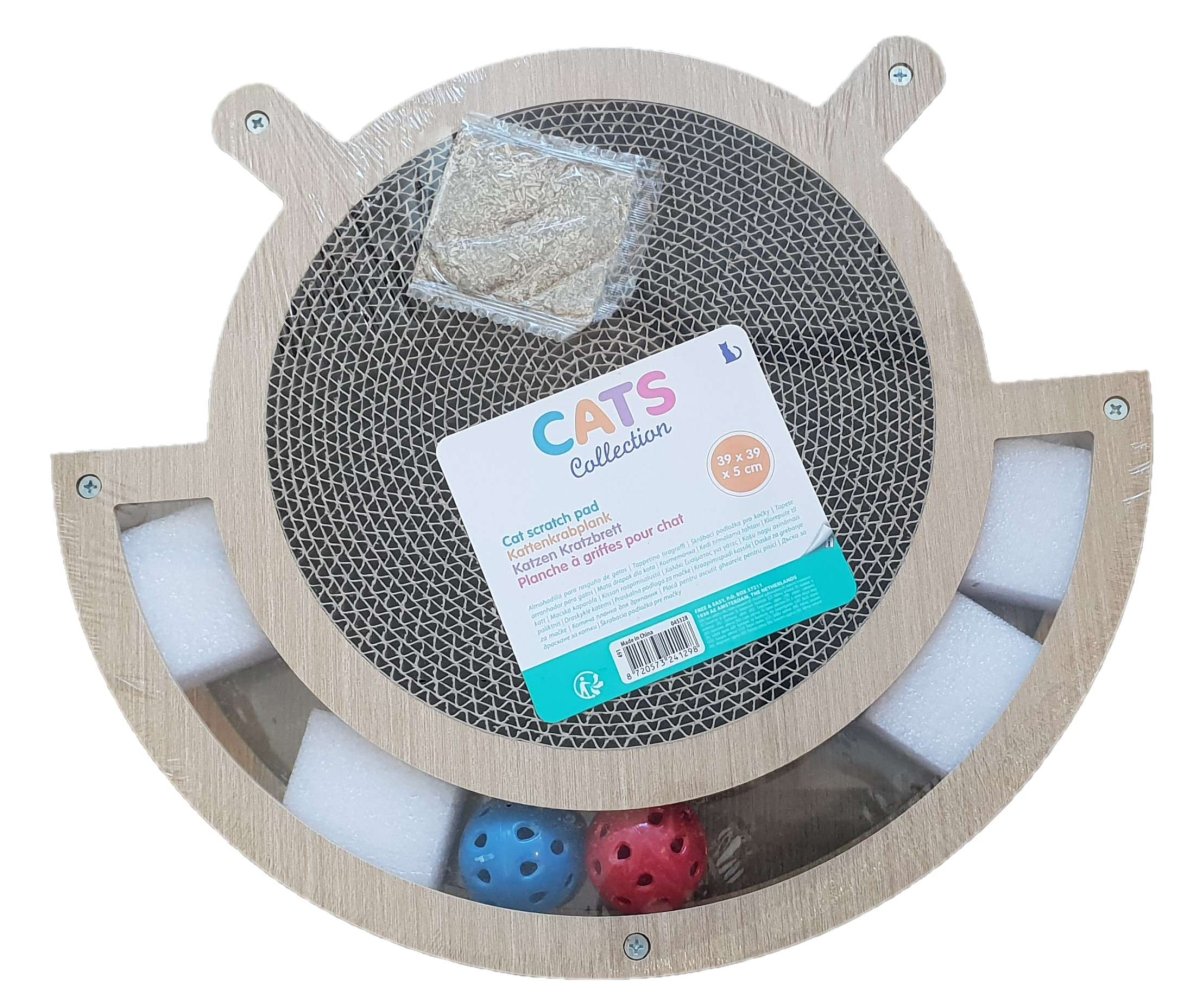De ronde vorm van de krabplank nodigt katten uit om hun klauwen te scherpen en biedt een comfortabele rustplek. De rinkelende balletjes binnenin zorgen voor extra stimulatie, waardoor je kat urenlang plezier heeft. Of het nu gaat om krabben, spelen of gewoon ontspannen, deze krabplank biedt alles wat je kat nodig heeft.