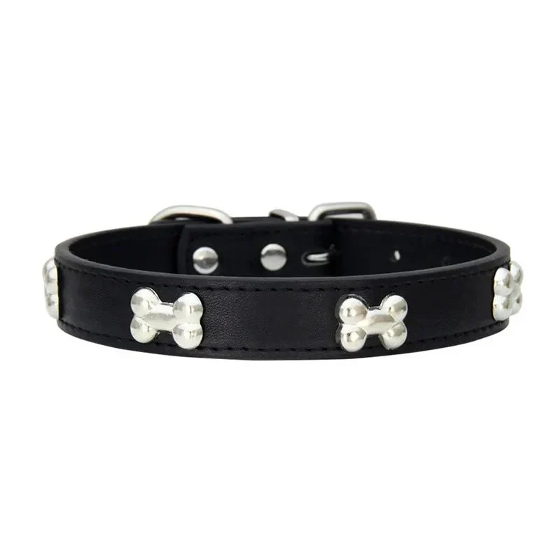 Voeg stijl en stevigheid toe aan elke wandeling met deze luxe leren hondenhalsband met schattige botdecoratie – geschikt voor zowel kleine als grote honden én katten.