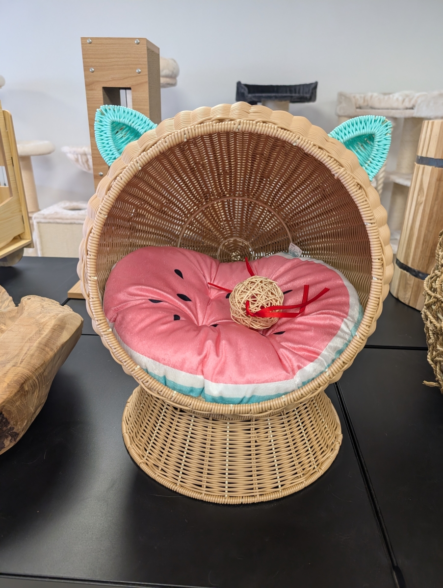 zeer mooie mand in plastiek rotan materiaal , dus erg stevig.