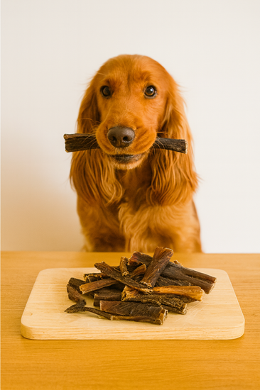 De runderpens is een 100% natuurlijk gedroogde hondensnack.