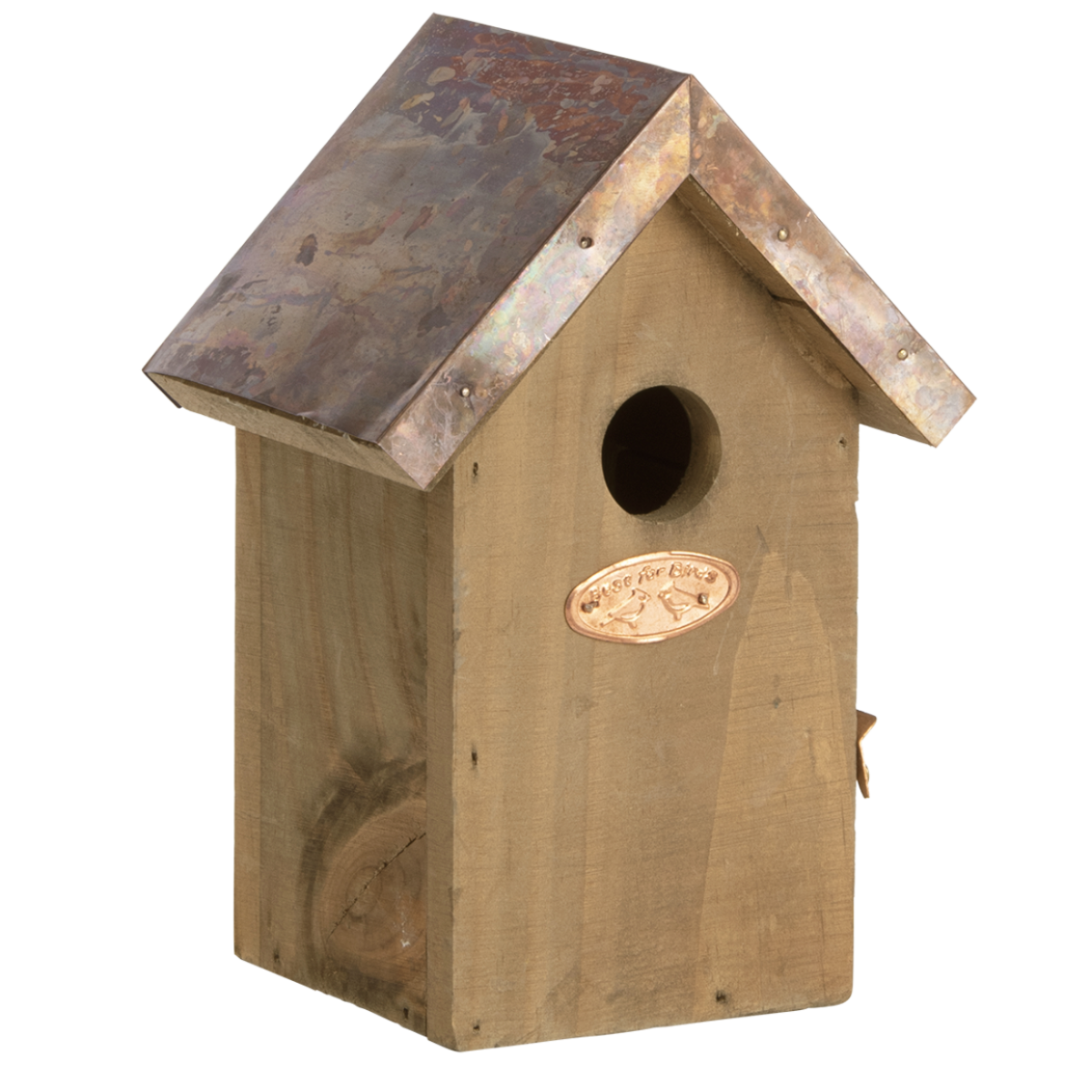 Gemaakt van duurzaam FSC® gecertificeerd vurenhout en afgewerkt met een robuust koperen dak, biedt deze nestkast optimale bescherming tegen slechte weersomstandigheden. De 30 mm vliegopening is perfect afgestemd op de winterkoning, terwijl de zijkant met scharnierende deur het schoonmaken eenvoudig maakt. Een praktische en stijlvolle keuze voor iedere vogelliefhebber.