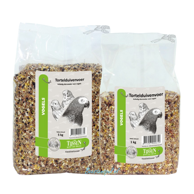 Tijssen tortelduivenvoer is een bonte mix van verschillende zaden.