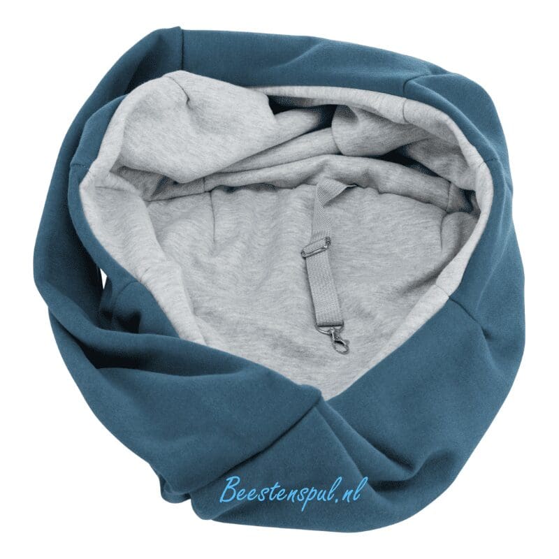 In de drager zit een kort lijntje met musketon om uw huisdier mee vast te zetten, zodat hij er niet kan uitspringen.