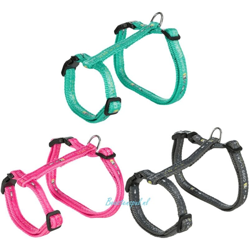 Stevig nylon kattentuig helemaal verstelbaar, met een kat/muis print.