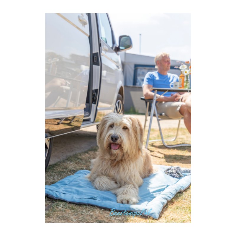 Deze hondenmat is ideaal om mee te nemen op reis.