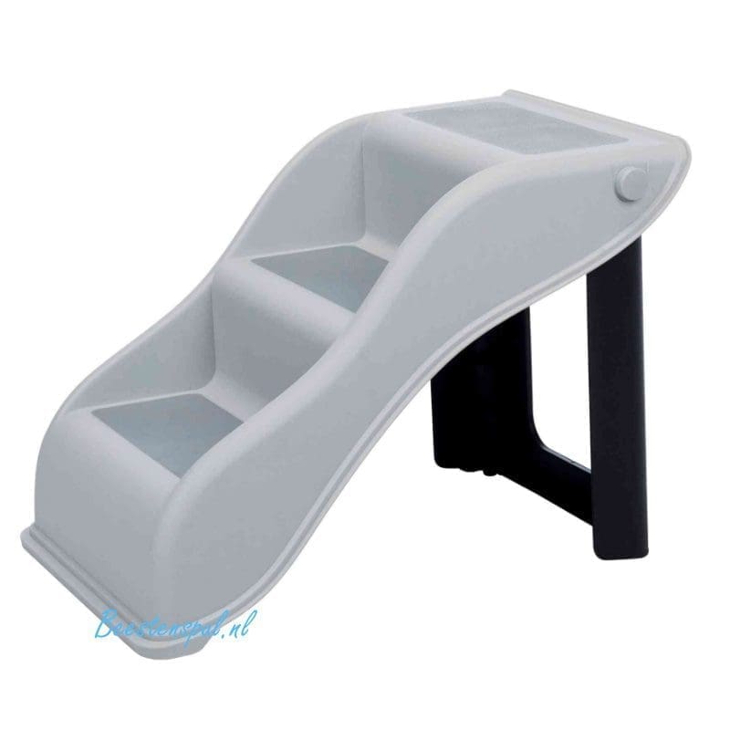 Deze handige trap is gemaakt van kunststof en TPR treden met op de loopvlakken een slipvaste laag.