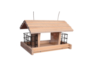 Er kunnen twee vetblokken aan allebei de kanten geplaatst worden en er kan via het dakje vogelvoer gevuld worden. Zowel als de vetblokken (Birdcake) en het vogelzaad is bij ons verkrijgbaar!