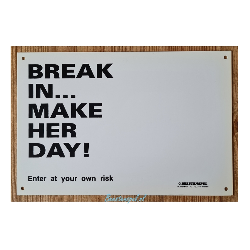 Waakbord, geschikt voor zowel binnen als buiten, met gaatjes om hem te kunnen ophangen.