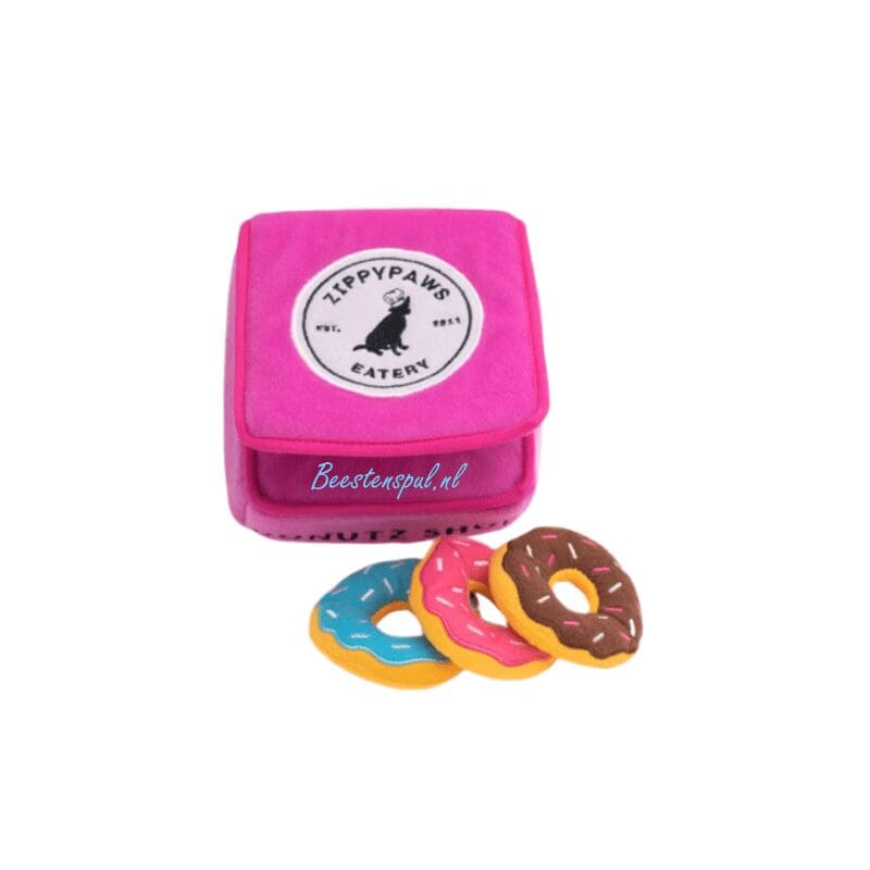 Dit interactieve spel zal uw hond stimuleren om de pluche donuts te zoeken en eruit te halen.